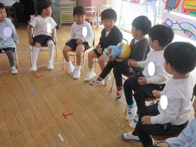 爆弾ゲーム:名前は怖いけどお人形を音楽に合わせて渡して、音楽が止まった時にお人形を持っていたら鬼だよ。