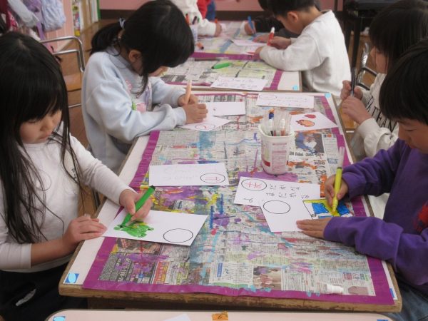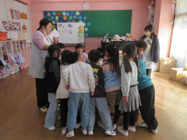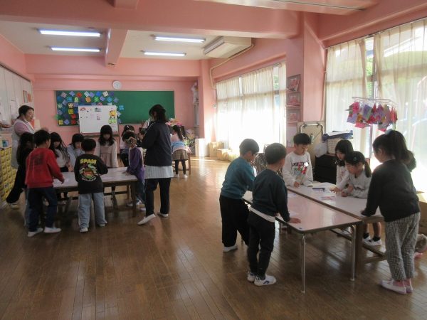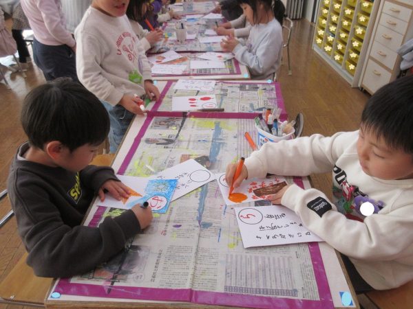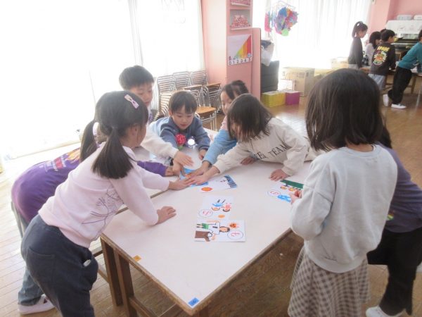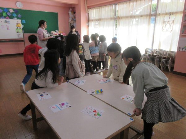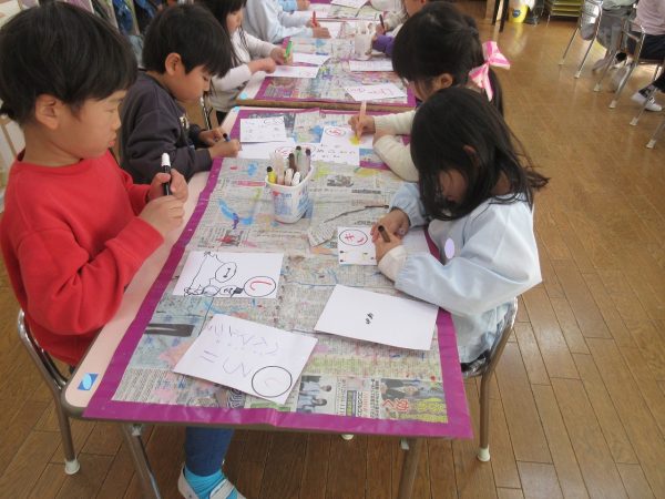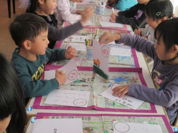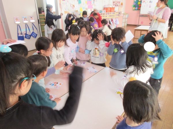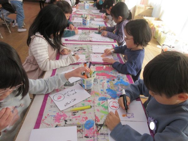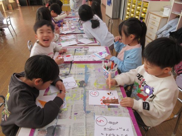 藤組さんは、「あいうえお…」の字を決めて、MYかるたをつくりました。字札は冬休み中にお家の人と一緒に考えて書きました。書いてある内容にあった絵を描くにはどうするか?・・・考えながら絵札を描きました。絵札が完成した後は、早速カルタ遊びをしました。どの机に読まれる絵札があるか、誰にもわかりません。藤組さんのカルタ遊びは迫力一杯✨ ご協力ありがとうございました💕
