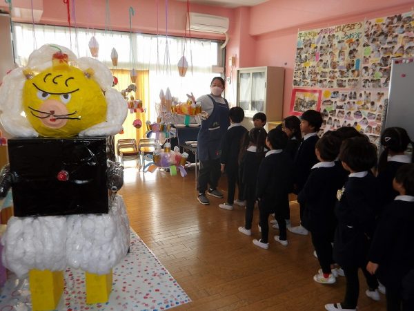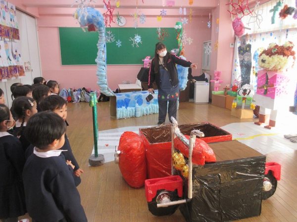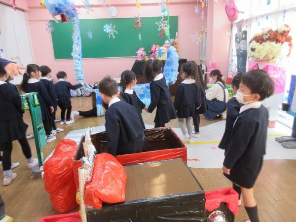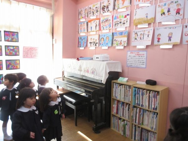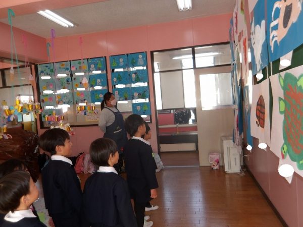 2月6日(金)・7日(土)に作品展がありました。6日(金)にこども作品展をしました。藤組・菊組さんがペアになって、自分たちの作品を見たり・遊んだり、小桜組さんがクラスのみんなと一緒に作品を見あいました。6日も7日も寒くなり、7日は雪が午前中から雪が舞い始めました。寒い作品展になりましたが、ご家族の皆様方にもみていただき、大満足の子ども達でした。ありがとうございました💕 ≪菊組・藤組ペア≫ ≪小桜組≫