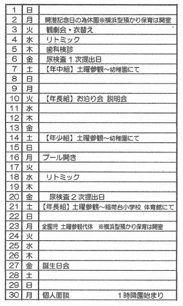 6月の行事予定