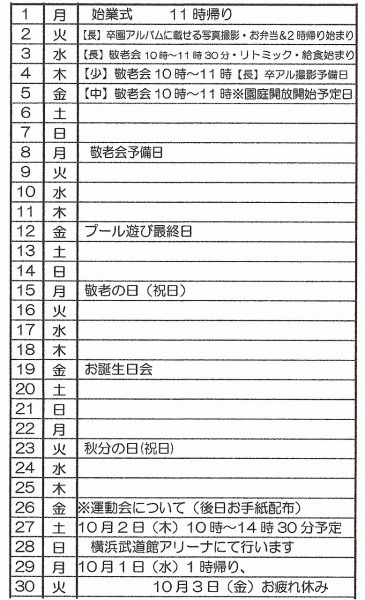 9月の行事予定