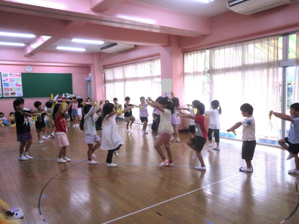 あっという間に1学期最後の月となりました。七夕やプール遊びなど、この時期ならではの活動を楽しんでいます。また、園庭では縄跳びに挑戦するお友だちが増え、何回跳べたかを競い合っています。そして、7月18日~19日には『お泊まり会』があります。お泊まり会に向けて、スタンツの踊りを踊ったり、ウオークラリーをしたり⋯。子どもたちは「あと何日でお泊まり会?」、「ちょっと心配だなあ⋯」とワクワク・ドキドキしているようです。楽しい思い出がいっぱい残る会になればと思っています。