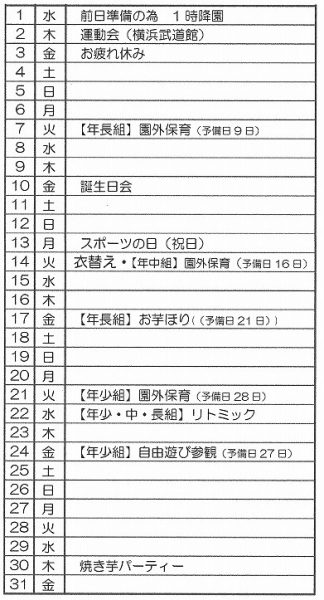 10月の行事予定
