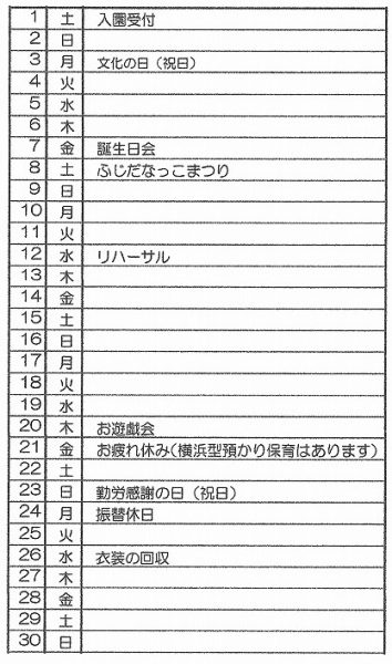 11月の行事予定